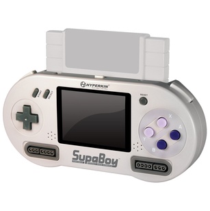 As the company describes it: "The SupaBoy will play original SNES cartridges on a built-in 3.5" LCD screen and is designed to look like an original SNES controller including a D-pad, face buttons, as well as right and left shoulder buttons. The SupaBoy also includes two front loading ports that are compatible with full-size SNES controllers and video/audio out, allowing up to two players to play the SupaBoy on a regular TV screen."